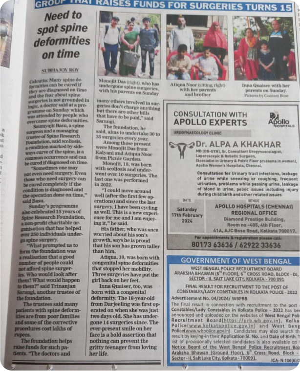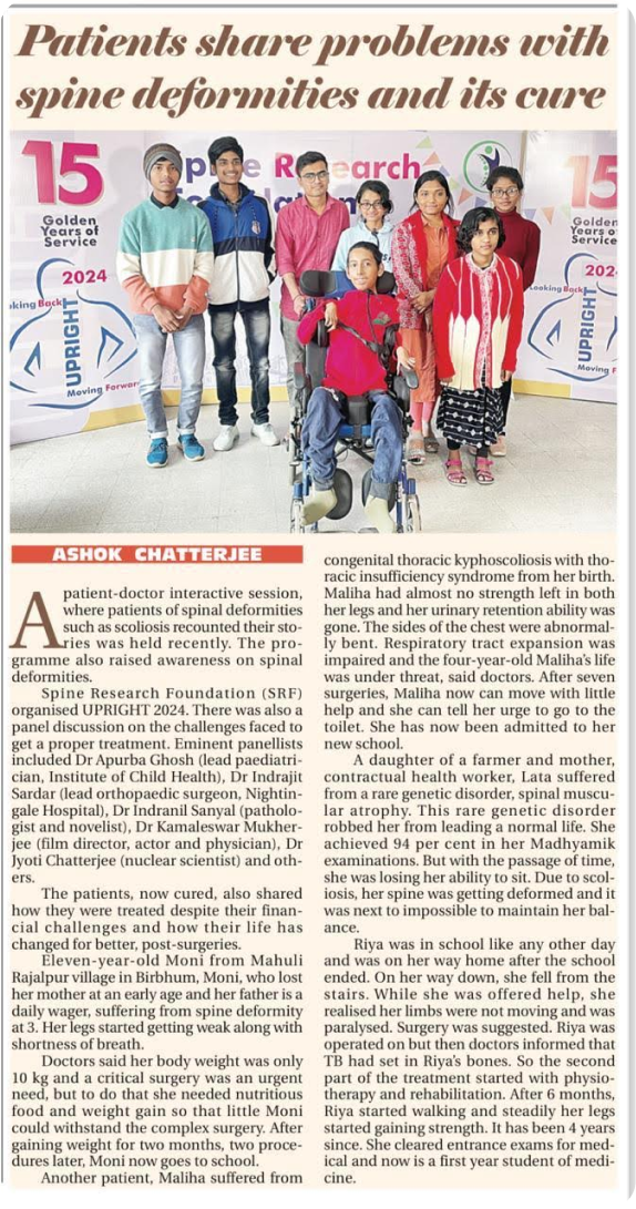 Welcome to the vibrant and inspiring Events page of Upright, the hallmark annual gathering hosted by Spine esearch Foundation (SRF), marking a tradition of excellence and empowerment for the last 15 years. Upright is not just an event; it's a celebration of resilience, a testament to the human spirit's ability to overcome challenges. Each year, we bring together our courageous patients, their families, and the medical community to share stories, advancements, and hope in the journey towards conquering spinal deformities. This page is your gateway to relive the magic of past events, discover upcoming gatherings, and join a community that stands tall against adversity. Welcome to "UPRIGHT" – where every spine finds its strength and every heart finds its beat.